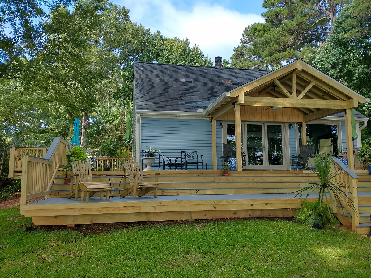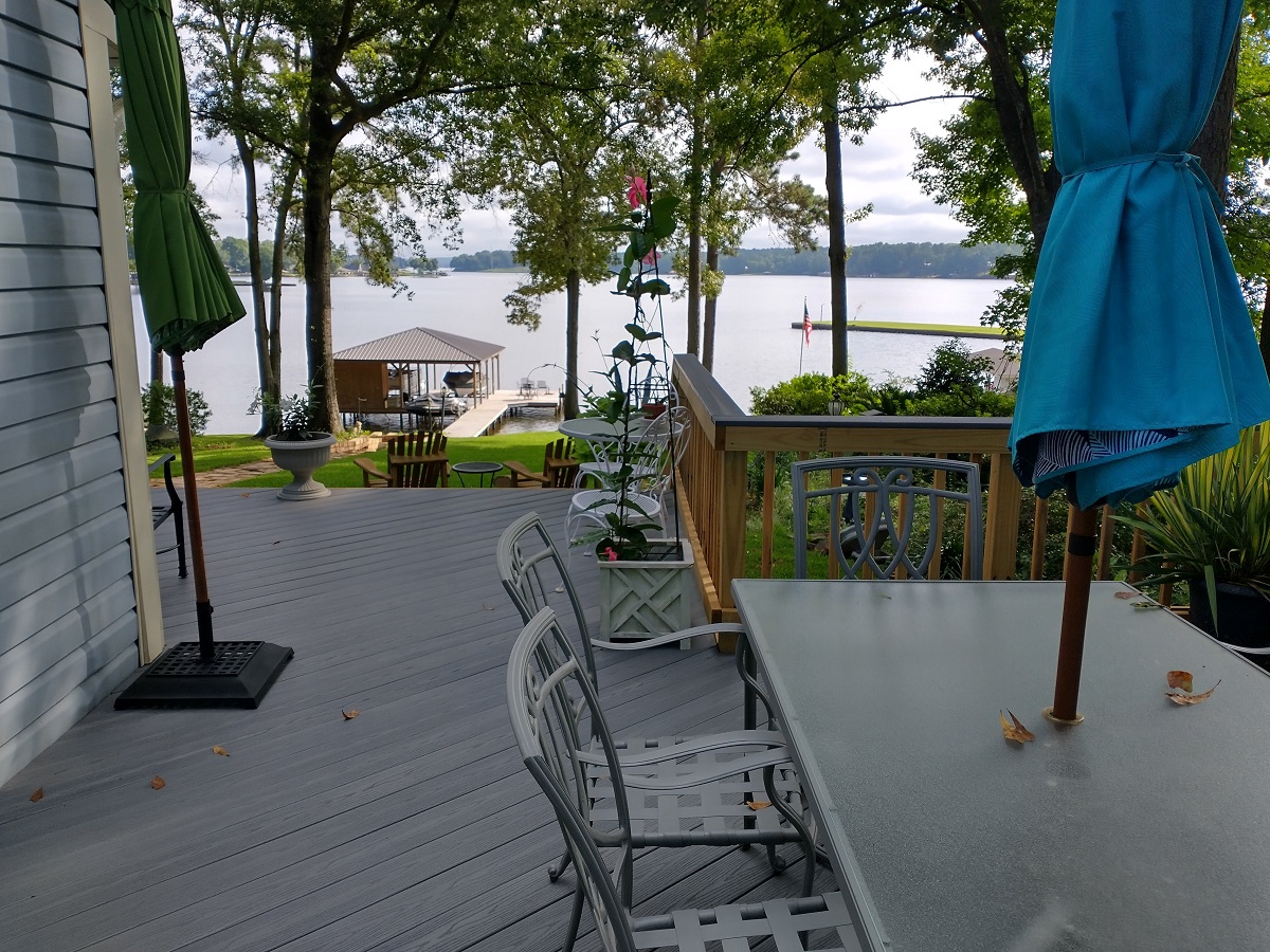 And if you think all this is impressive enough, just look at the stunning Lake Sinclair views this family enjoys – a mere few yards from this new deck and porch combination.