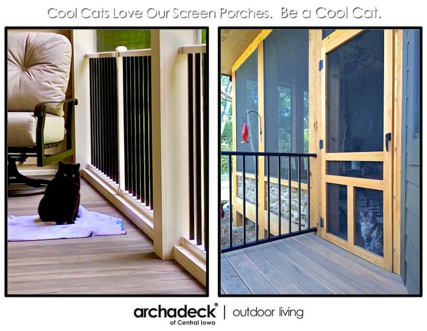 - Cool Cats. Lets face it…there is no happier cat than a cat that has a screen porch. Our clients are cool cats.