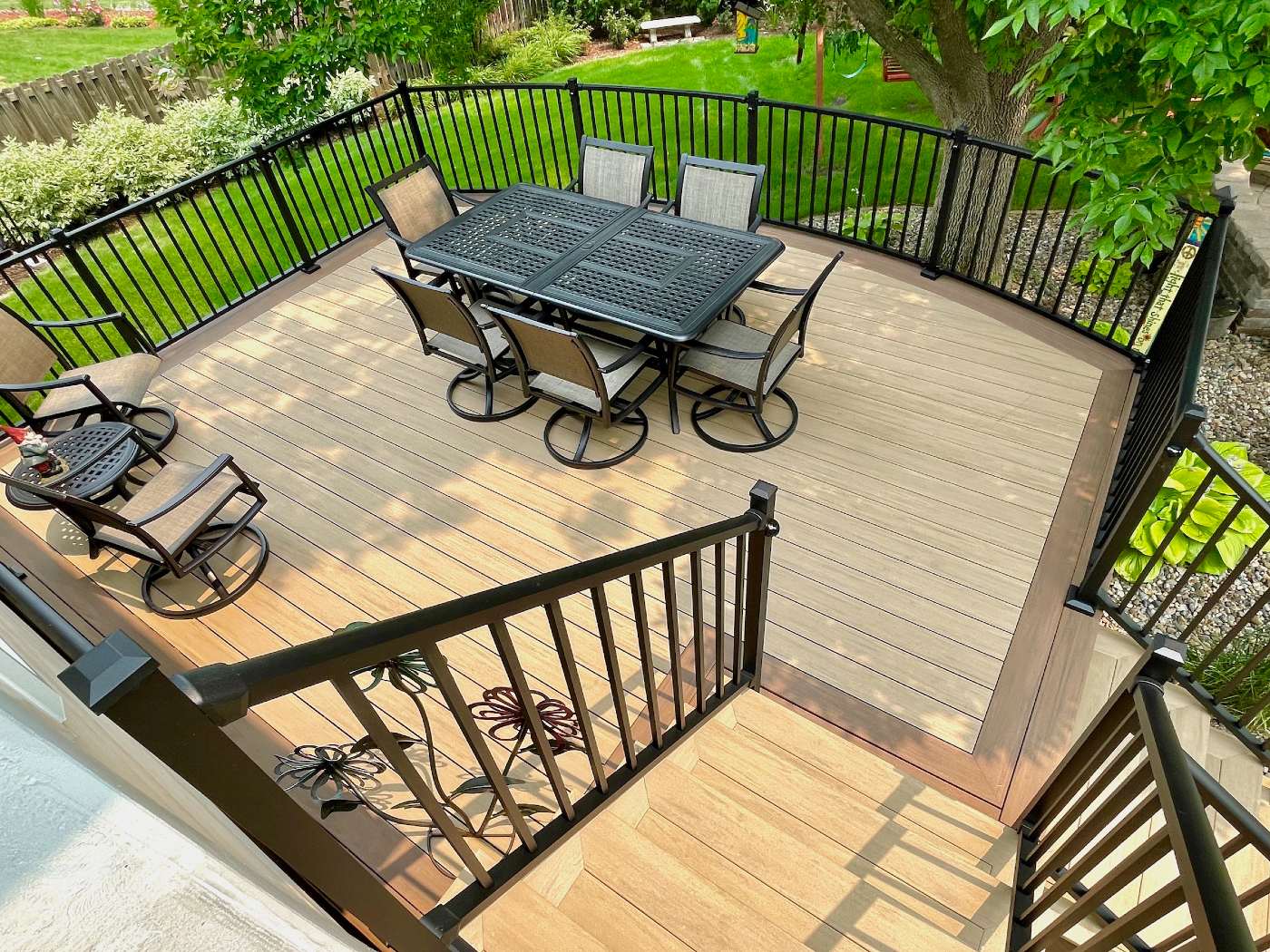 A lot of Des Moines deck companies recommend two-board borders on decks with railings. This is because the extra width "pops" visually as railings cover just one board. Beyond aesthetics, picture framing offers technical benefits that offset costs compared to other trim options, making it both beautiful and practical.