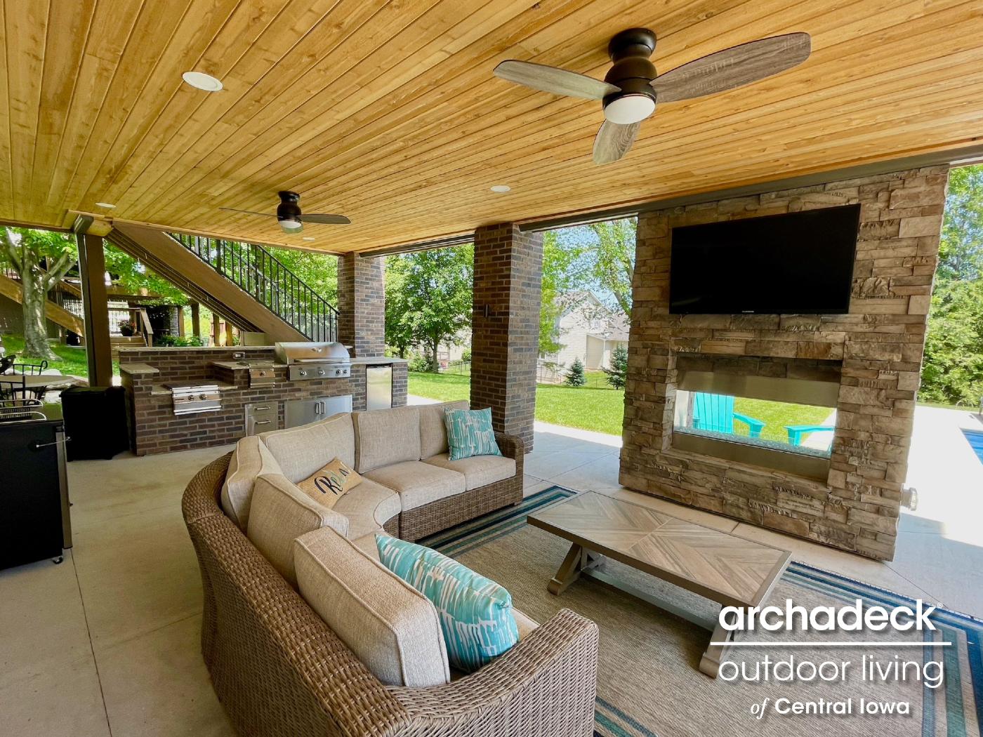 Des Moines porch companies and patio builders are increasingly adding more usable spaces beneath elevated decks. Part of why this is possible now is by using wide-spanned posts, strategically placed. This makes the under-deck space feel more open.