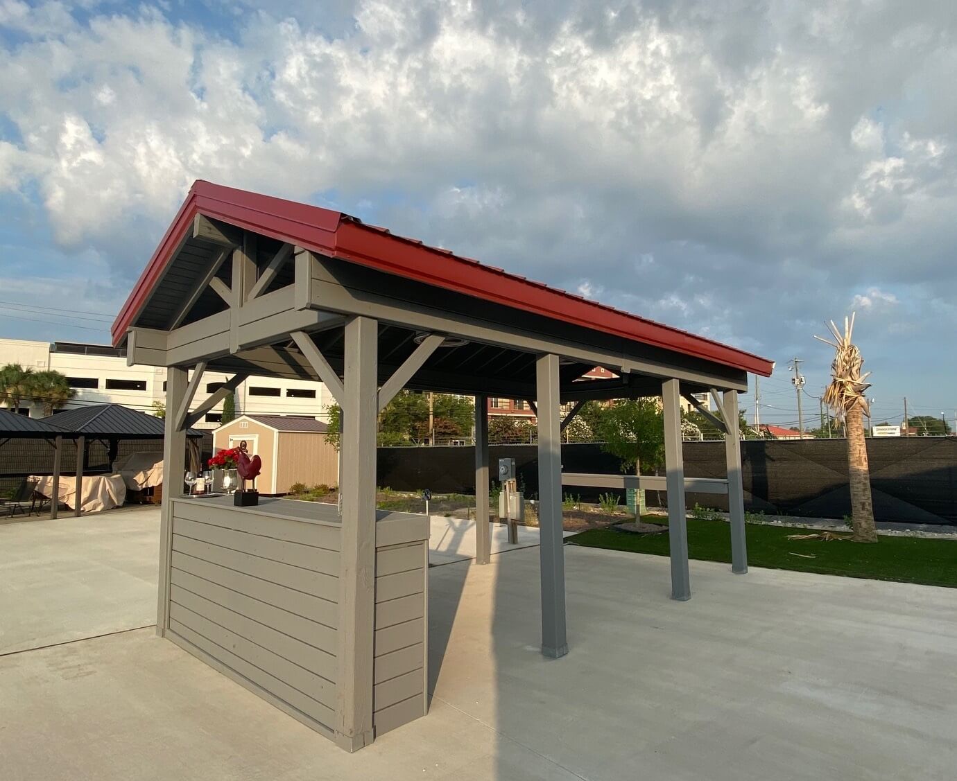 This beautiful pavilion is located in Cruisers Roost RV Tailgate Park near Williams Brice Stadium. With a bar, ceiling fans, and a place to hang the big-screen TV, this is the perfect place for these Gamecock fans to enjoy some social distancing fun times this fall in the fantastic weather we enjoy here in South Carolina! And, of course, they’ll be passing around the silver tray of Redneck Caviar!