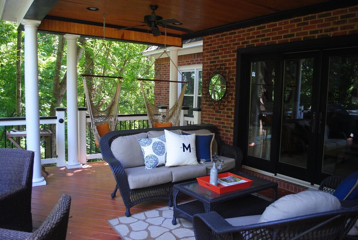 Porches serve as ideal protected outdoor living spaces in various areas around your home. A back porch will provide shelter from rain and plenty of shade on those hot Columbia days. An open porch also makes the perfect accompaniment to an open-air outdoor structure like a deck or patio. Deck and porch combinations — and patio and porch combinations — are very popular with local homeowners.
