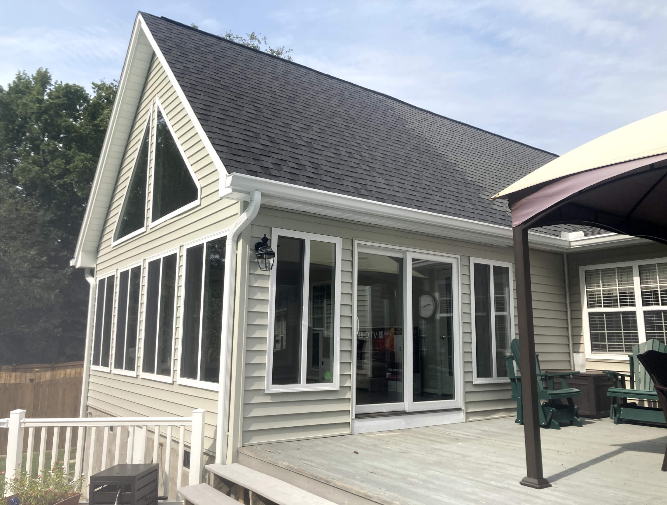 Just like all the outdoor living spaces we design and build here at Archadeck, this sunroom appears original to the home. Our sunroom designs are meant to be extensions, not additions. Our main goal is to create a room that blends seamlessly into the existing architecture of your home. To achieve this, we can help you select materials that match or complement your home perfectly. For the exterior materials on this sunroom, we matched the siding, trim colors and shingles to those present on the home.