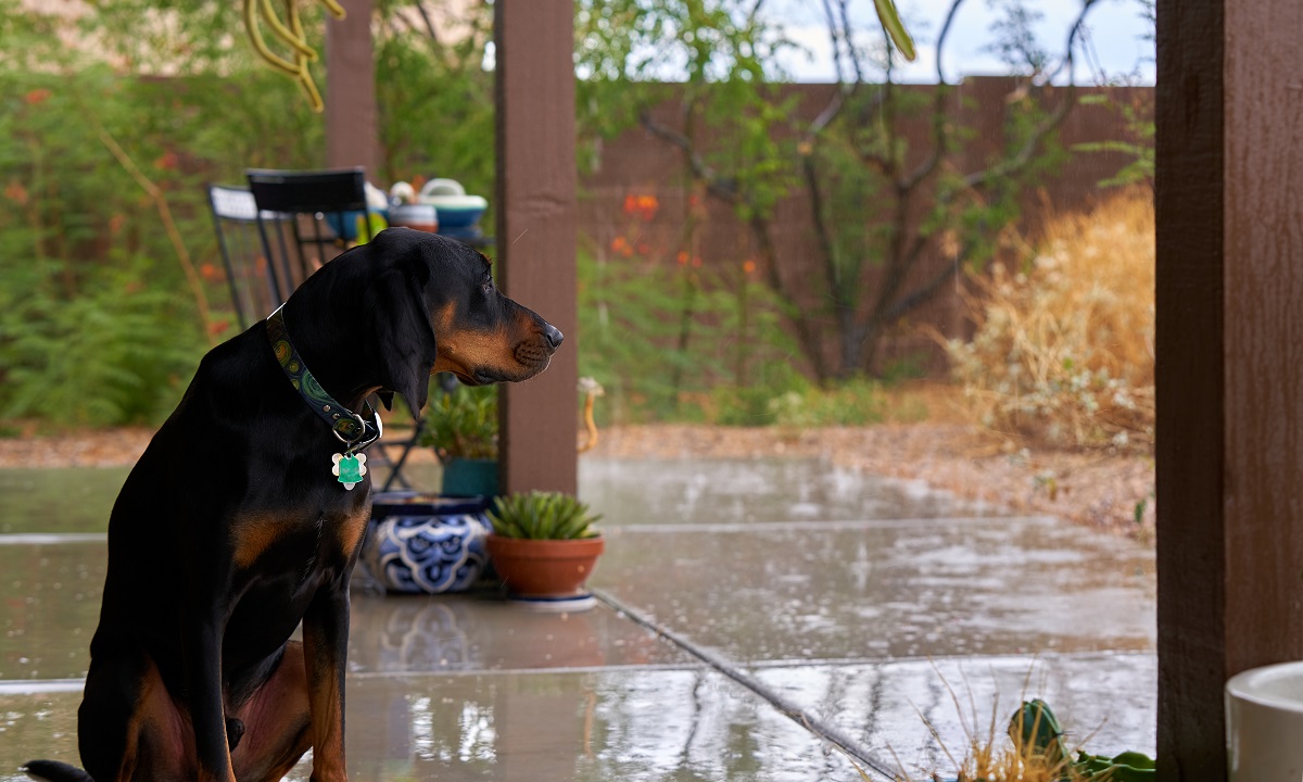 A traditional covered porch is open on three sides, so it is only natural that some degree of rain will blow into the porch. Heavier rains may cause more intrusion into the porch and vice versa. The degree of overhang your porch has will also dictate how much rain enters, as will the use of gutters. Your porch roof should be large enough to provide a good buffer zone of protection. A properly designed overhang is the best defense against vertical rain, too.
