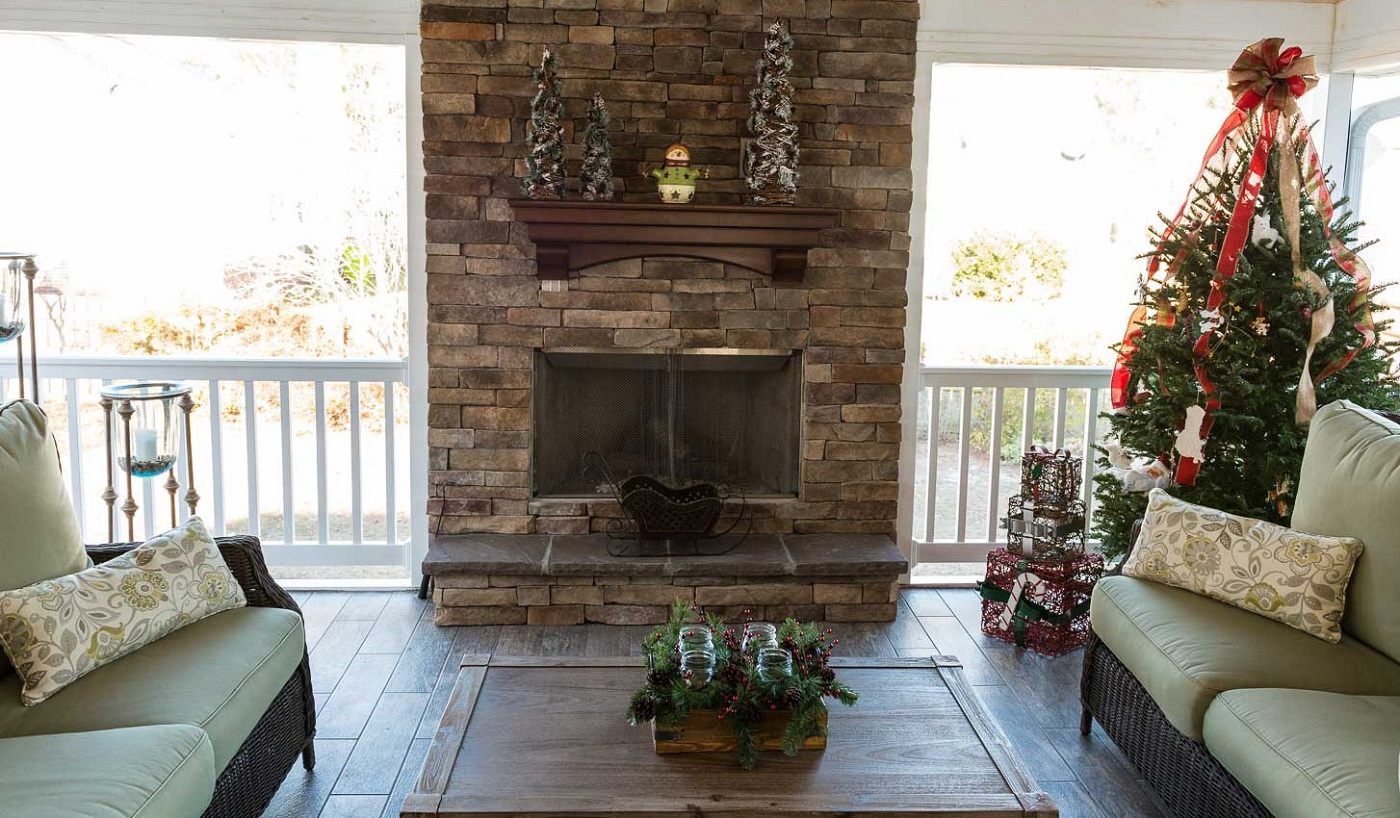 Should you wish to spend longer hours outdoors after the sun sets, we recommend the addition of a custom outdoor fireplace on your screened porch. For those wishing to use their screened porch well into the cooler months, electric ceiling-mounted heaters are a terrific amenity option.