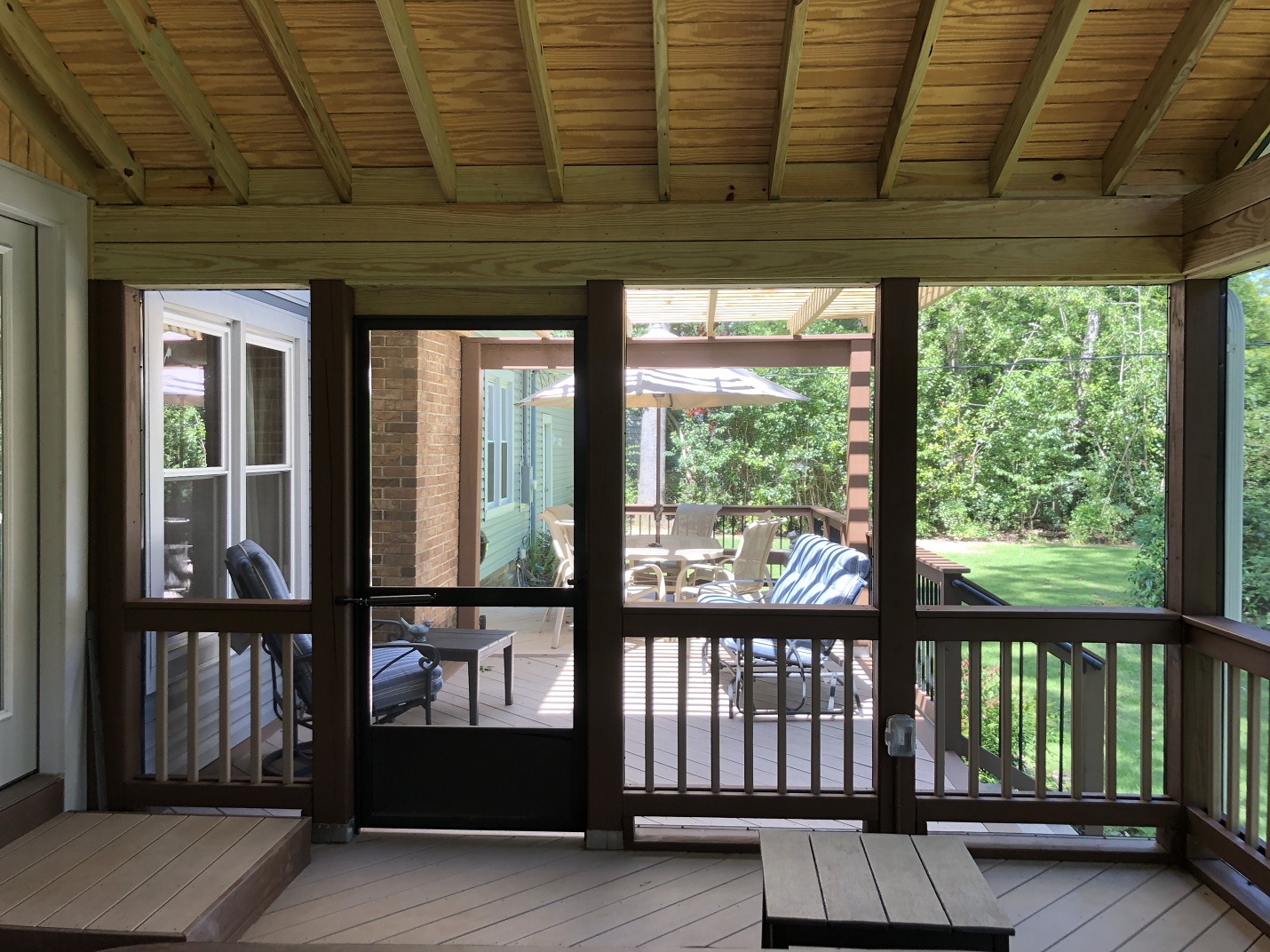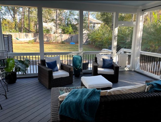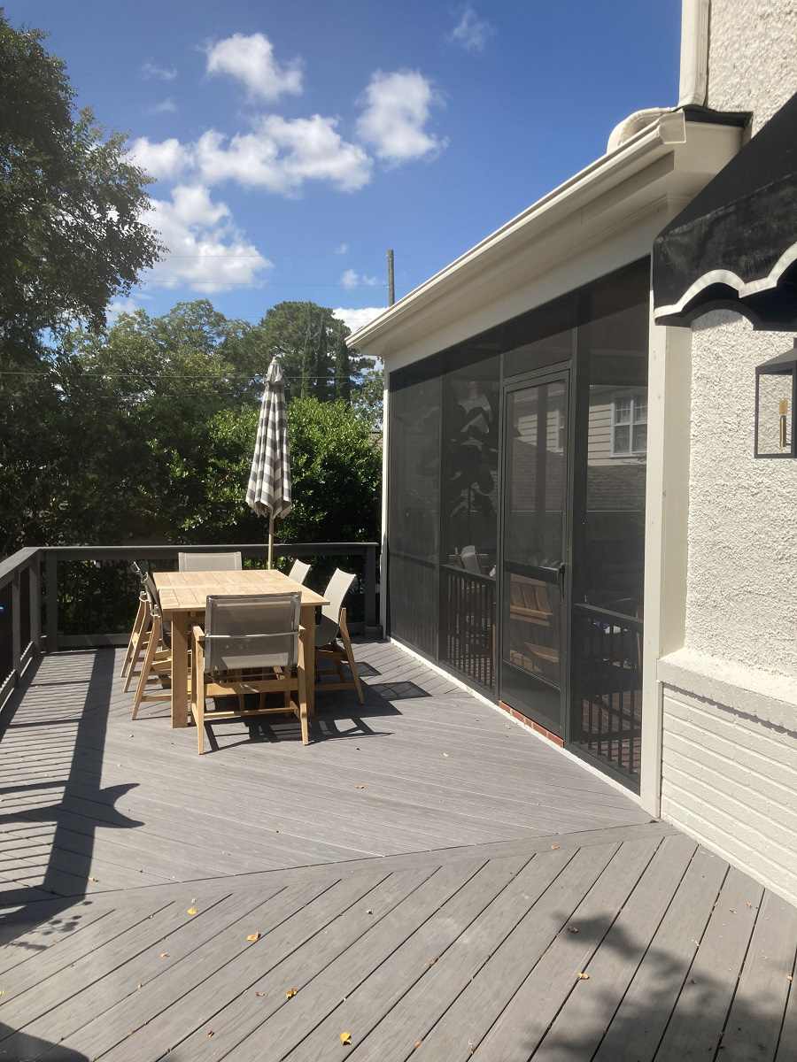Interestingly enough, some clients decide to add a deck extending out from their newly-constructed screen porch, offering the best of all outdoor living worlds. A new open-air deck is a great way to enjoy beautiful weather more fully, while the adjacent covered porch offers protection when the weather changes.