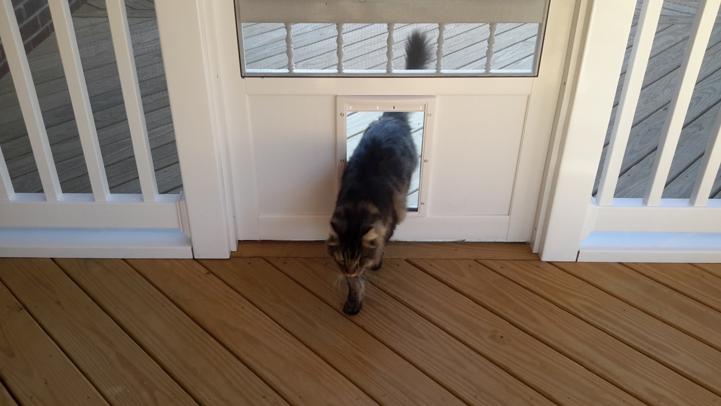 A screened porch with a custom pet access door is the cat’s meow!