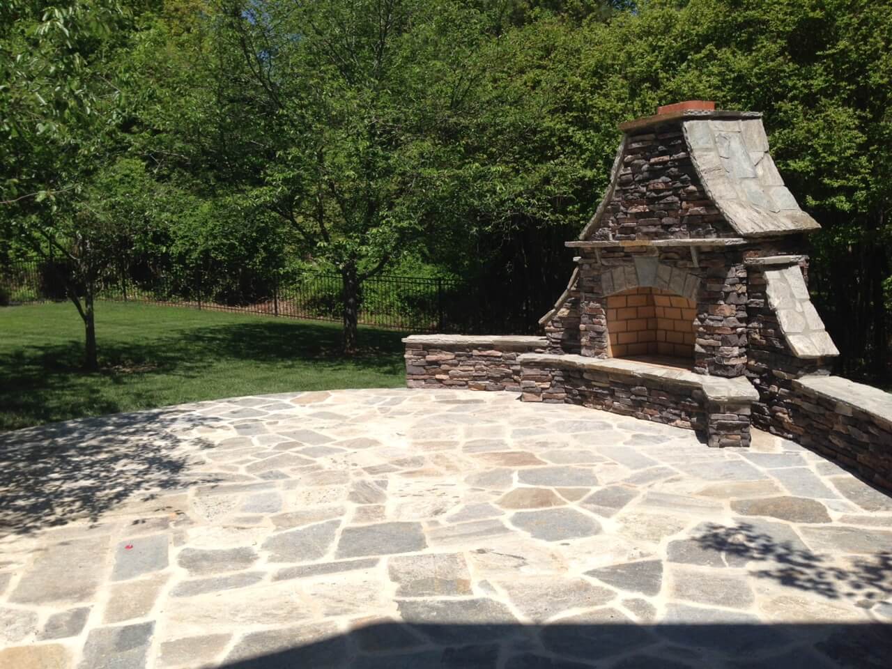 Finally, flagstone is a growing choice amongst people in the Charlotte, NC area. It is generally laid in concrete and has some great advantages. It is perhaps the highest aesthetic appeal, no weeds can grow through it, it is low-maintenance, and has great utility. The disadvantages are high price and the concrete is likely to crack over time.