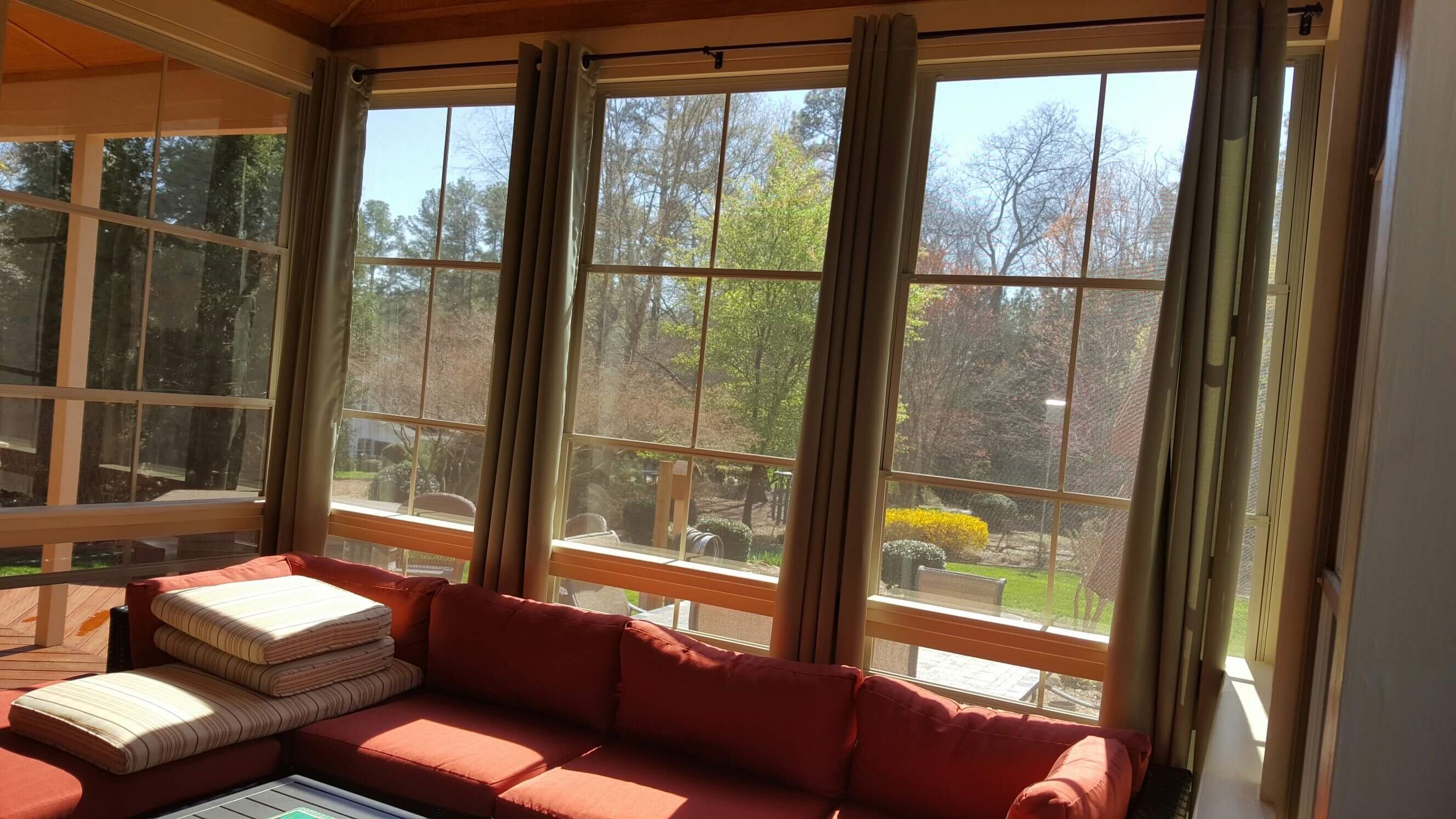Let’s face it, sometimes you want the freedom of the screen but you don’t want the negative things that can still get through that screen. Screens keep out the insects and the harmful direct rays of the sun, but pollen and other allergens can still penetrate screen, as does the wind, cold, heat, high humidity and in some instances even a little rain.