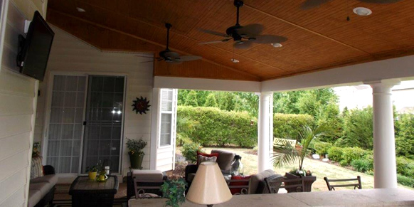 If you want a little more protection, you’ll probably be interested in a screened porch, which includes rain and sun protection and adds insect protection to that. No more mosquitoes and flies “bugging” you while you try to eat a nice meal out on the porch! Screened porches have been a favorite in SC and NC since … well, since screens were invented.