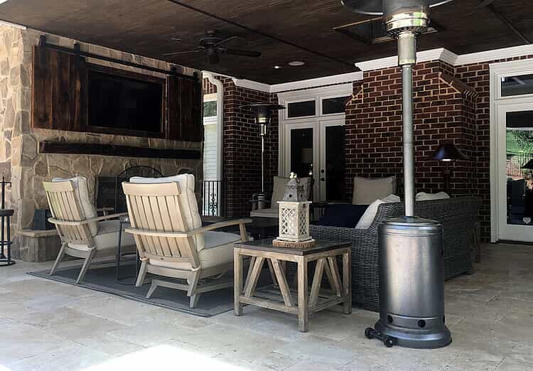 Charlotte porch with built-in TV enclosure