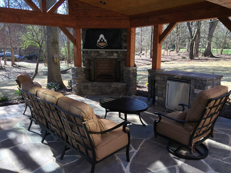 Many Charlotteans know that outdoor living doesn’t necessarily end in the late fall in our area. If you have a project completed in early fall this year, you can likely steal hours outdoors in your new space in the late fall and even in the wintertime. For instance, if your new porch or covered patio includes an outdoor fireplace, you have a heat source for cool days that you might otherwise have to spend indoors.