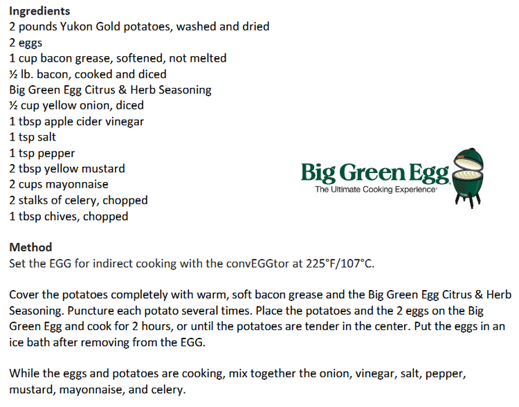 Many of our outdoor kitchen designs include a Big Green Egg. It’s not just about the savory smoked meats if you have this versatile outdoor cooker! Try this delicious sounding smoked Yukon Gold potato salad recipe at your next outdoor party.