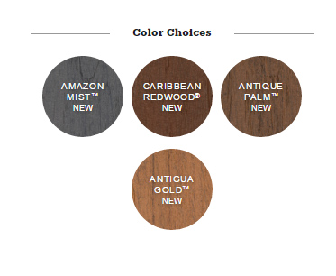 This collection emulates the resort feel and fond memories of all those great vacation destinations you’ve visited! Multi-color streaking and exotic wood grains complement rich, saturated tones, inviting you to relax in your own personal paradise just outside your back door.