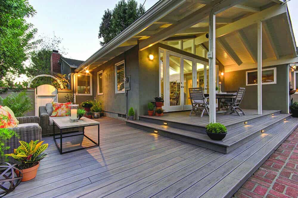 Building a composite deck is be a great solution if you have kids or pets, who might be apt to pick up splinters on a wood deck. With a composite deck, your outdoor space will remain splinter-free. Also, quality composite decks stand up to the elements. Even full sun, rain, and snow are no match for a composite deck. TimberTech AZEK decks come with fade resistance, holding their color for literal decades, even in full environmental exposure. Rain and snow moisture will not warp your composite decking boards, or cause mold or mildew to form. Perhaps even more important, is that your high-traffic composite deck will be resistant to dents and dings from dropped objects. Also, if you are looking for an eco-friendly decking choice, TimberTech composite decking is made up of 80 to 100% recycled content and is considered a sustainable decking choice!