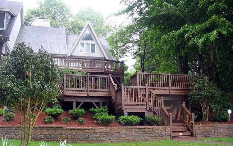 If you want to build a deck that will not require annual maintenance, you should build a composite deck. Composite decks are popular choices for Charlotte area residents, who seek to forego the time and expense involved in sanding, painting, or staining every year or two. Composite decks simply require periodic cleaning, which can be done by lightly scrubbing with a broom and gentle detergent. They are easily sprayed off or swept to be kept free of falling tree debris. While a composite deck is not considered maintenance-free, you will find yours to be ultimately low-maintenance, which means more time enjoying your deck each year.