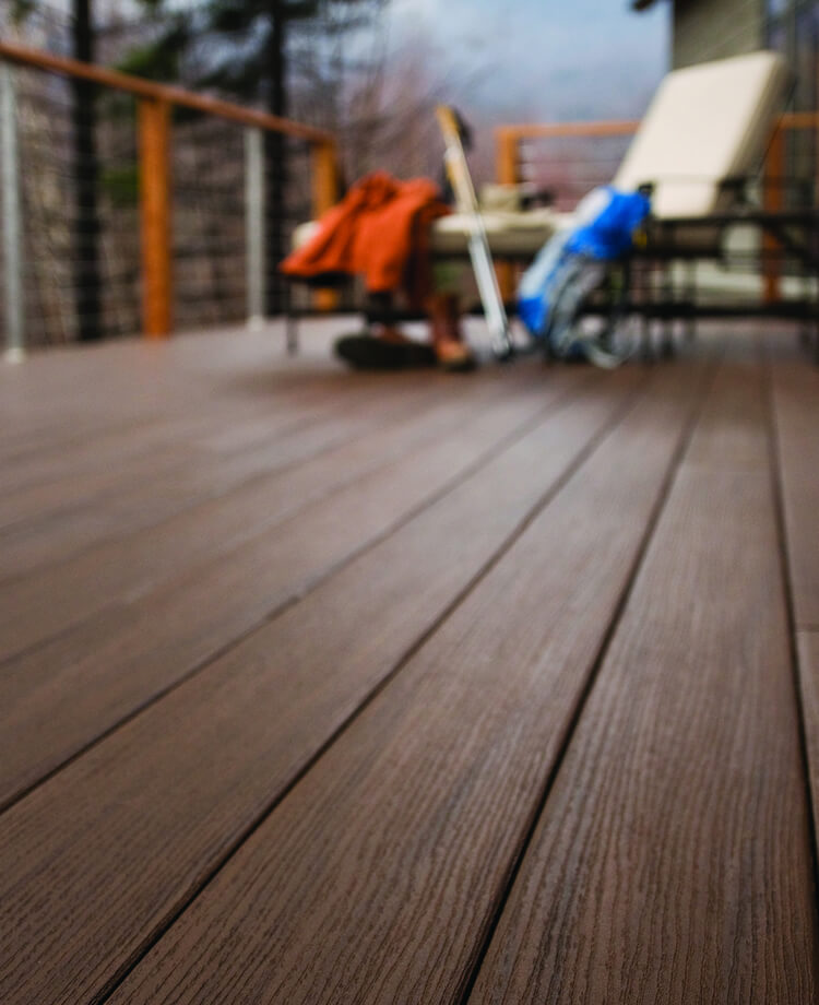 At the heart of TimberTech capped composite and capped polymer decking, you will find up to 100% recycled materials. Each decking board is comprised of up to 80% recycled material, including the cap, without compromised strength and durability. TimberTech never fells trees to produce their sustainable decking. By using only wood waste in their composite decking cores, they have helped save more than one million trees since 2015.