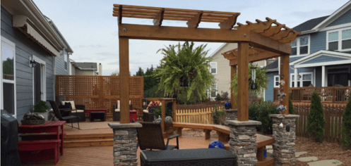 Pergolas are generally thought of as shade structures but they actually play a big role in designing the aesthetic of your deck. This custom 3-section pergola design in Fort Mill adds visual appeal and height to this outdoor living space. Pergolas provide the opportunity to truly customize your deck with lights, plants, and other season decorative elements!