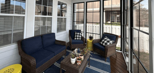 The process of adding a screened in porch to your home is somewhat more streamlined than a sunroom. Typically planning for a screened porch requires less details, can be more cost-effective, and doesn’t require the same structuring as a sunroom. Screened in porches allow you to enjoy outdoor views while experiencing the smells and feel of nature. It’s important to note that even though screened porches can have radiant heating installed like heaters or a fireplace, they are not a true year-round outdoor living space. Extreme weather conditions like cold, harsh rains, and high Carolina heat may limit the use of your screened porch. Despite this disadvantage, screened porches are a great way to add valuable living space to your outdoors.