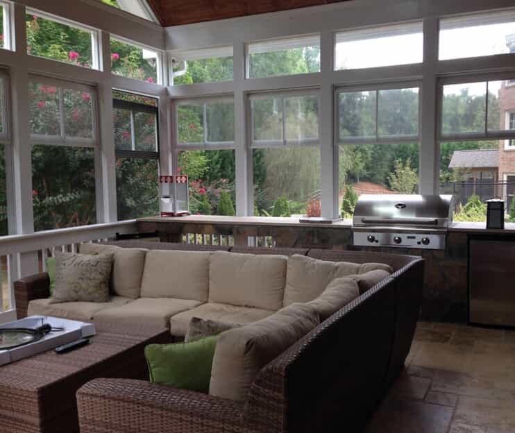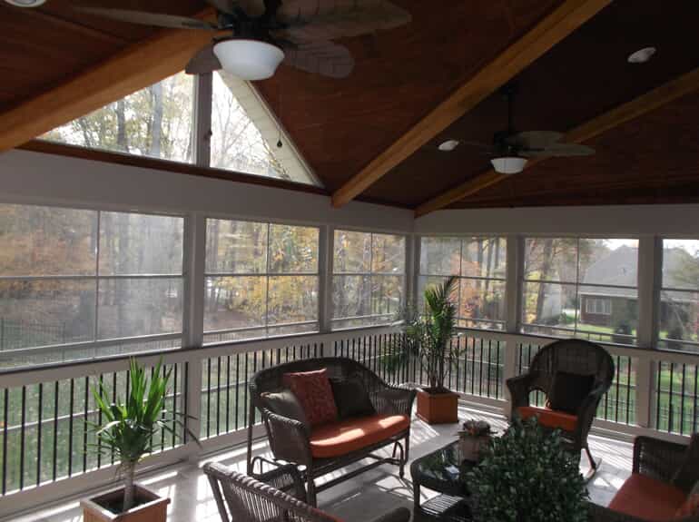 Screen porches also aren’t going to hold in heat as well as a 3-season room or sunroom, although, you can add outdoor heaters to help provide a warmer outdoor living experience. Deciding whether or not the disadvantages of a screened n porch affect your decision is completely up to you. Learn more about 3-season rooms to see if that’s the right fit for you.