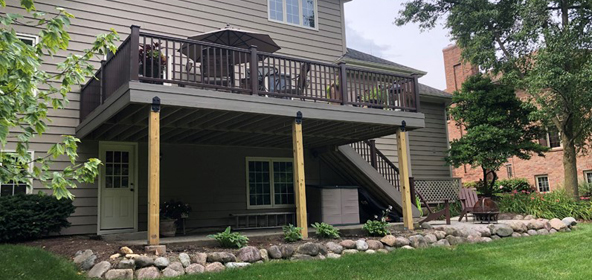 The average lifespan of an all-wood deck is between 10 and 15 years. In harsh climates, like those with a lot of snow, the usability of a wood deck can be at the lower end of that estimate. While we do offer re-decking at Archadeck of Chicagoland, this Winfield deck called for an all-new structure, which we provided. How do you know if your existing deck still has good life left in it? We follow the ‘BESAFER’ model to determine deck safety.
