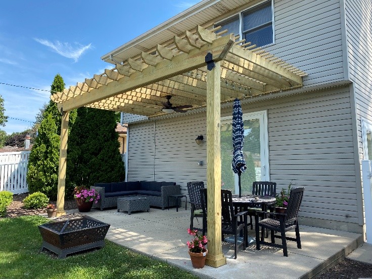 Pergolas & Gazebos: We design and install custom pergolas that Chicagoland homeowners love for adding architectural interest, filtered shade, and a designated gathering space, instantly elevating your outdoor area.
