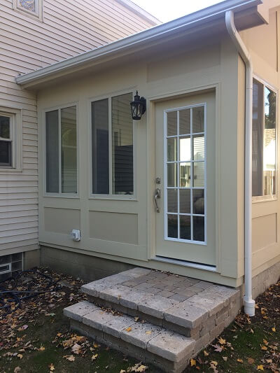 For this particular project, we installed sliding glass windows so the homeowners have the option to open them to allow fresh air on mild days, and closed on cooler days. With the addition of a space heater, this outdoor room will remain warm and comfy in spite of what Mother Nature has in mind.