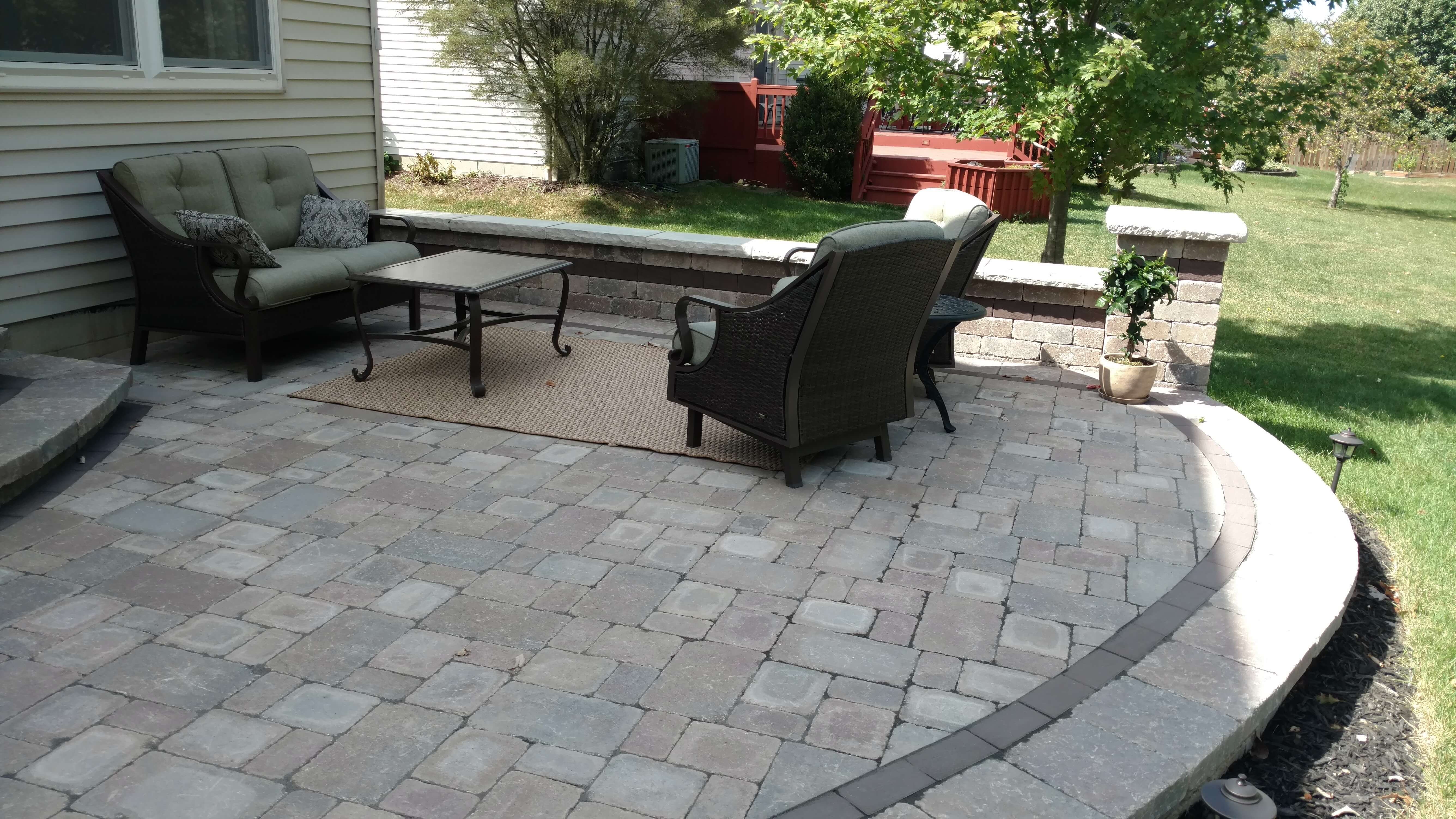 Our recent hardscape outdoor living space addition in Lewis Center, OH, is a step above your traditional patio. The project features a multi-tiered paver patio with a privacy wall and custom fire pit. True to the title of this focus story, this backyard oasis has all the right curves…