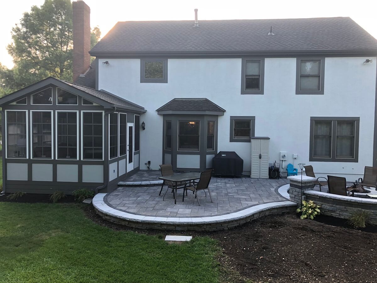 Sometimes a tired, aging wooden deck just needs to be RE-tired, as in “retired,” as in replaced by a patio. That was the case for these Dublin, OH, homeowners who decided to go with a fresh, new paver patio and hardscape from Archadeck of Columbus instead of redecking or having a new deck installed. They also upgraded their screened porch by turning it into a 3-season room. Their instincts were good. Look how this stunning patio and 3-season room combination space has brought new life to their back yard!