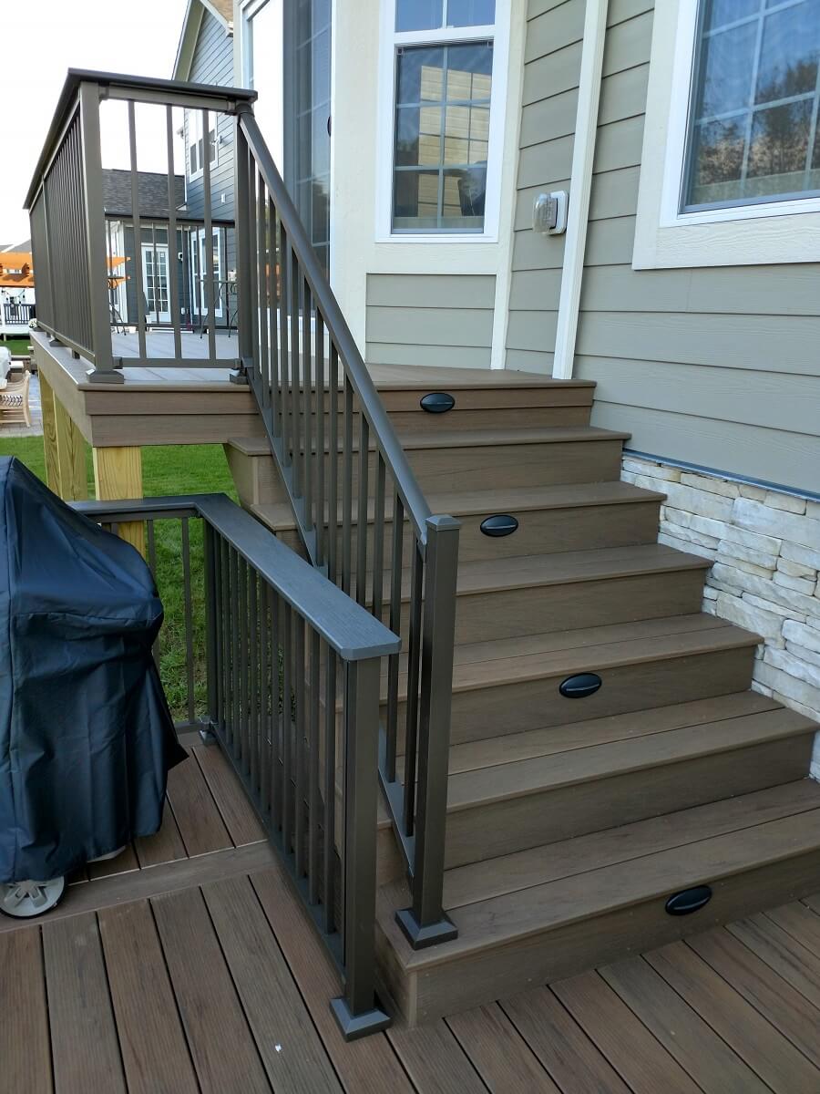 — Custom railing cap and stair riser lighting in Westerville, OH.
