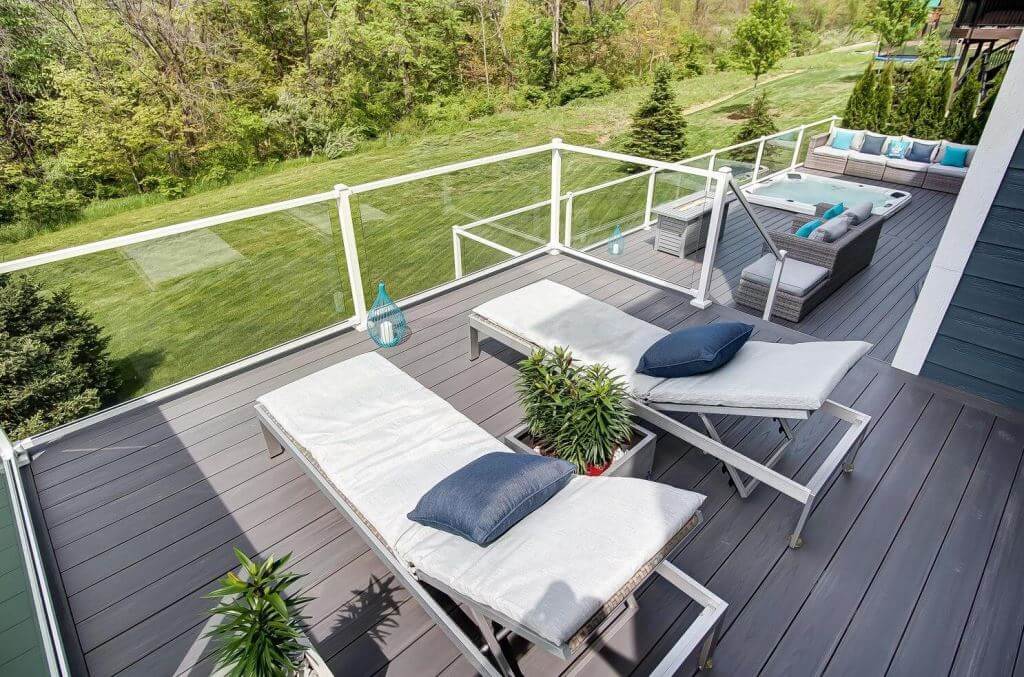Once we confirmed the new proposed backyard transformation through our Archadeck design process, we got to work making their vision come to life. The new deck addition was built using low-maintenance TimberTech decking in Ashwood from their Pro Legacy Collection. This decking will ensure any gray skies will turn to blue as this decking requires very little maintenance on the part of the homeowners. Four-sided capping makes it extremely resistant to moisture damage, and its protective surface resists everyday stains and scratches. These qualities make this decking board perfect for use around pools, docks and water features (like a hot tub)!