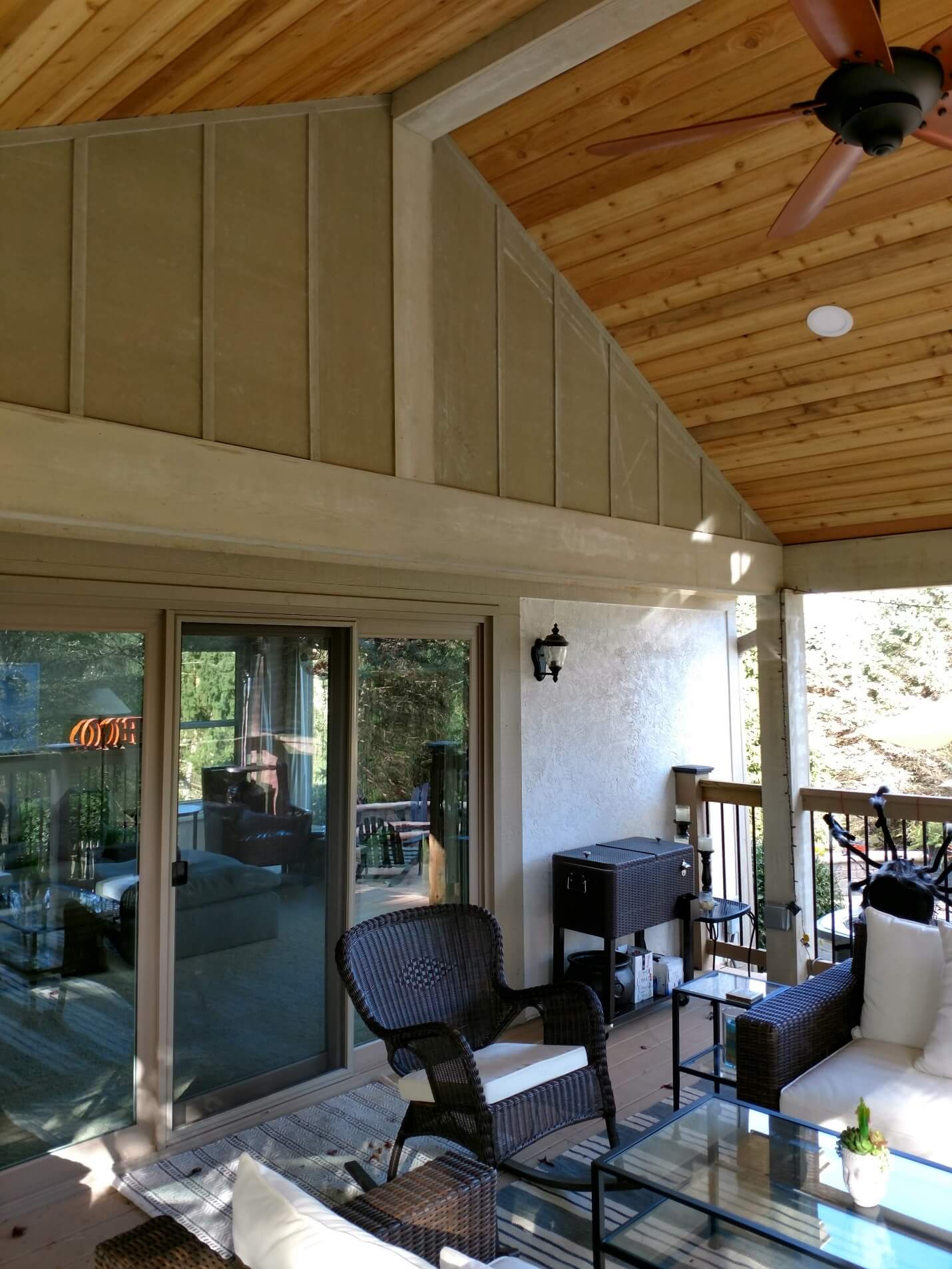 —Powell OH porch interior: Hardie board siding and Boral gable trim.