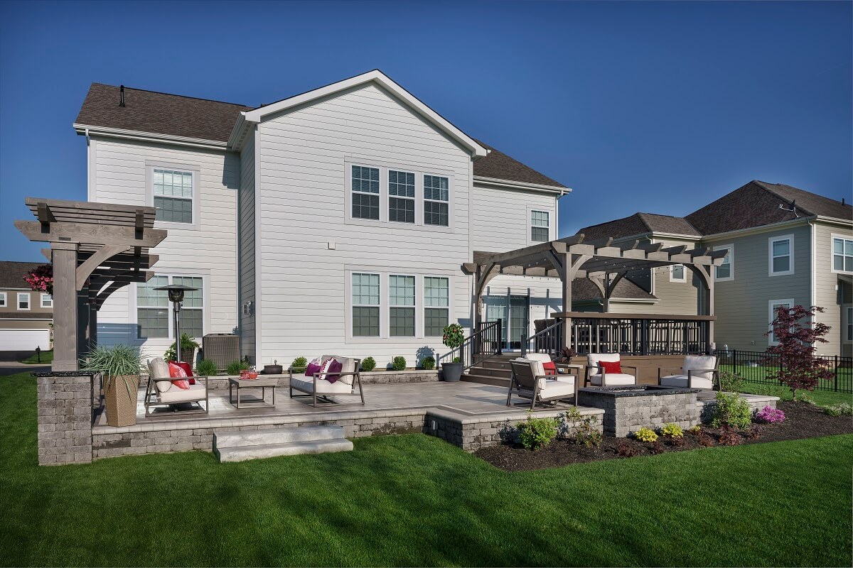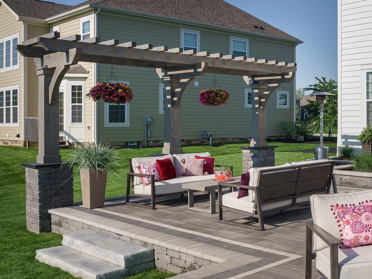 The winning project is a combination hardscape, deck, pergola and fire pit project in the Ballantrae subdivision of Dublin, Ohio. While Archadeck of Columbus can take credit for the execution, we can’t take credit for the selection of the materials. The homeowners devoted all of the time necessary to look at hundreds (maybe thousands) of pavers and stones and made their own selections for the hardscapes. Quite a few different materials went into this project, and yet it all comes together as a unified design in a splendid pattern of neutral white, black and grays — simply stunning!
