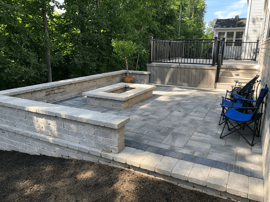 These homeowners were excited about increasing their functional outdoor living real estate. They were looking forward to entertaining in their new space, along with creating treasured memories with friends and family. One of the items on their “must have” list was a space that was low-maintenance yet high-aesthetic. As the area’s premier TimberTech and AZEK deck builder, and Unilock patio builder, meeting their desires was no problem!