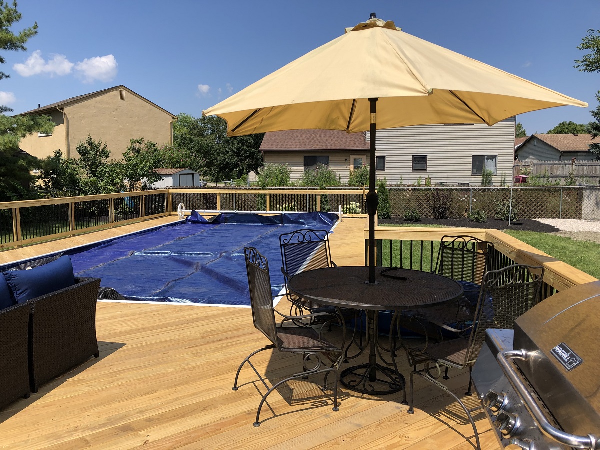 Our Columbus deck builder team took the original footprint of the outdated Columbus pool deck and created an outdoor living masterpiece. The lesson here for folks looking for a custom deck builder is trust Archadeck of Columbus to perform miracles – even with the original schema of your backyard.