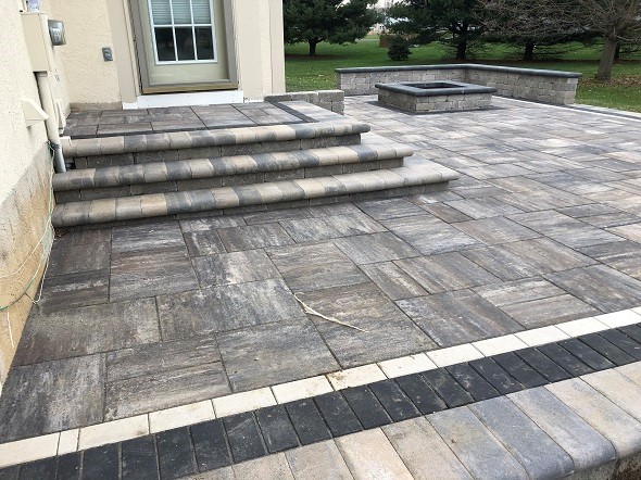 For the pavers, we used County Materials Corporation XL Pavers on all the paver surfaces in the color Timeless – pretty fitting, right?