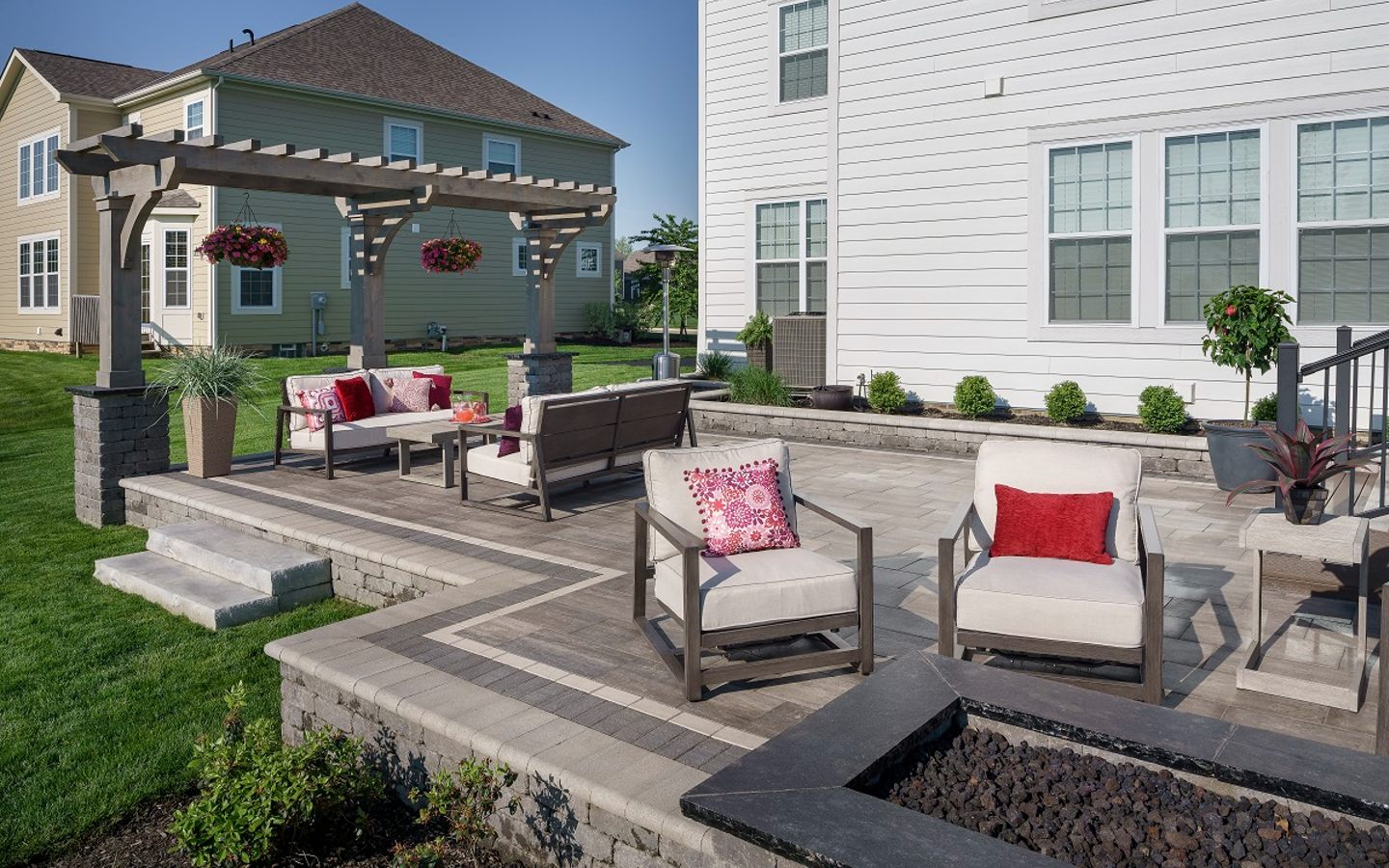 Our Ballantrae clients wanted an open and expansive outdoor living design with multiple seating areas as they entertain frequently.