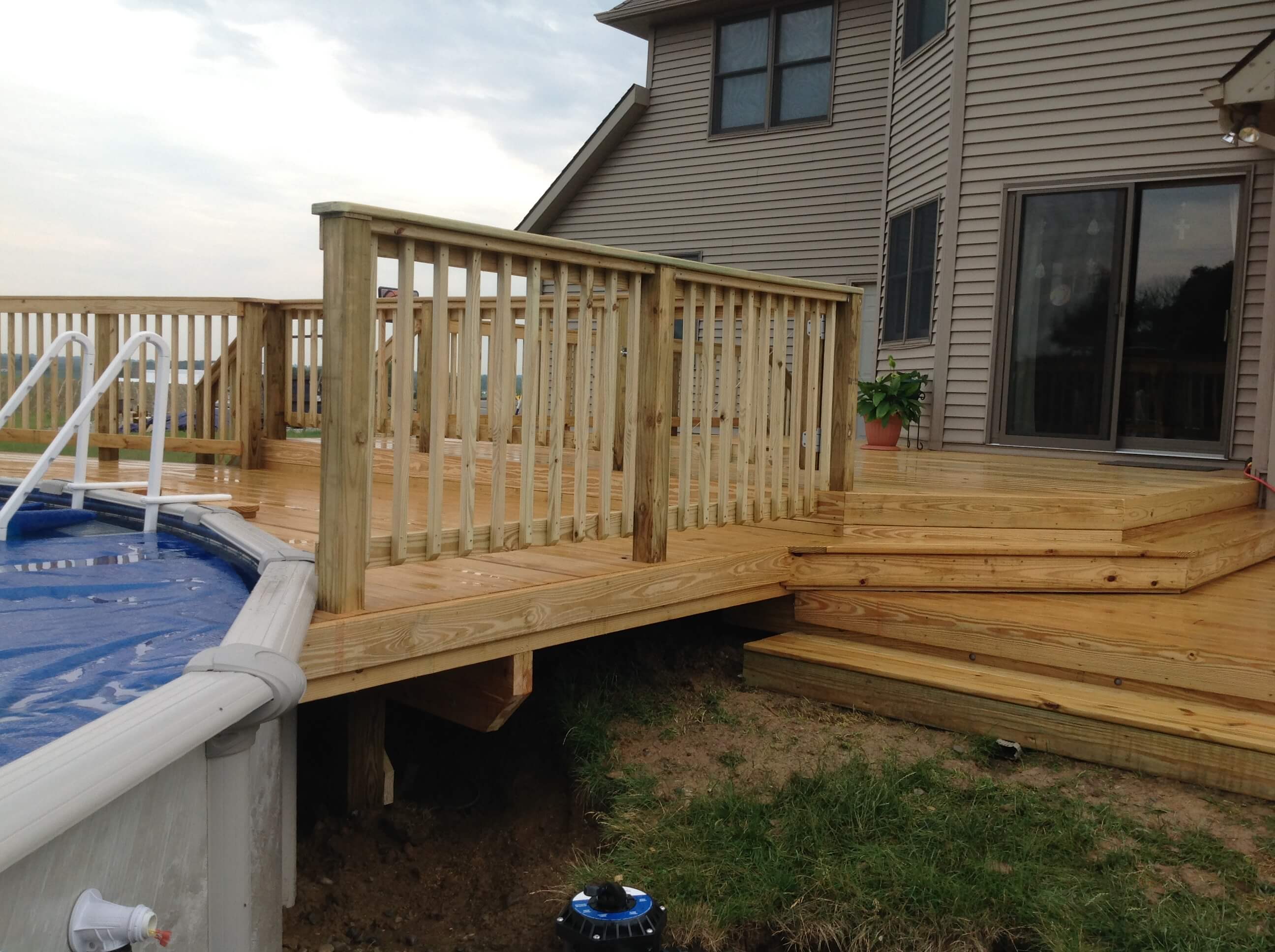 This pressure treated wood deck affords plenty of space for outdoor entertaining as well as a safe and secure access to the pool. A lockable gate prevents unsupervised entry to the pool itself.