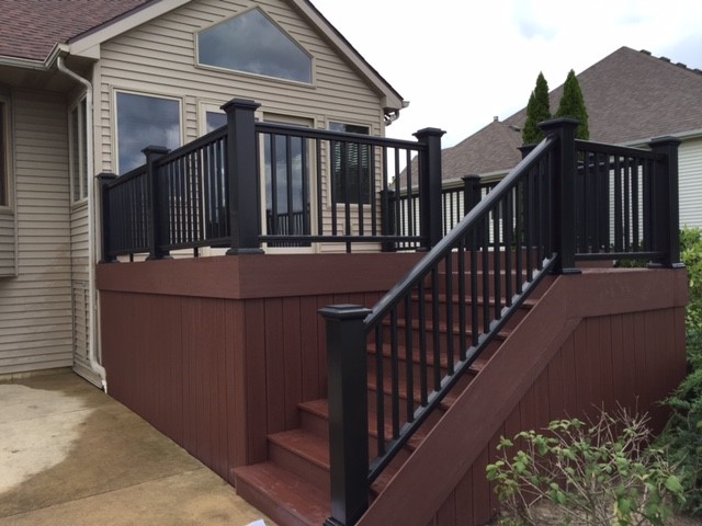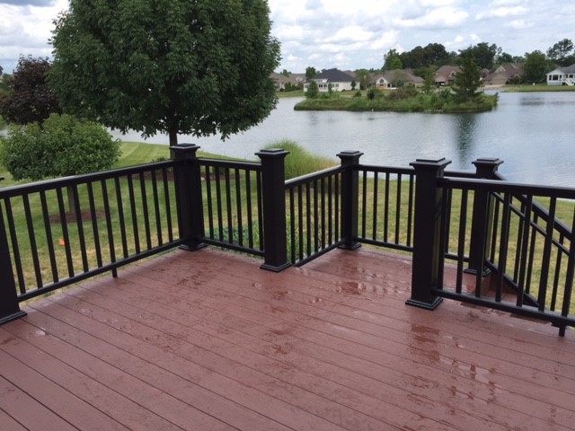 The owners of this Northwest Fort Wayne home can say goodbye to the arduous job of maintaining their old wood deck and wood railing. Archadeck of Fort Wayne and northeast Indiana was hired to design and install a beautiful new low maintenance composite deck, railing and skirting using basically the same footprint.