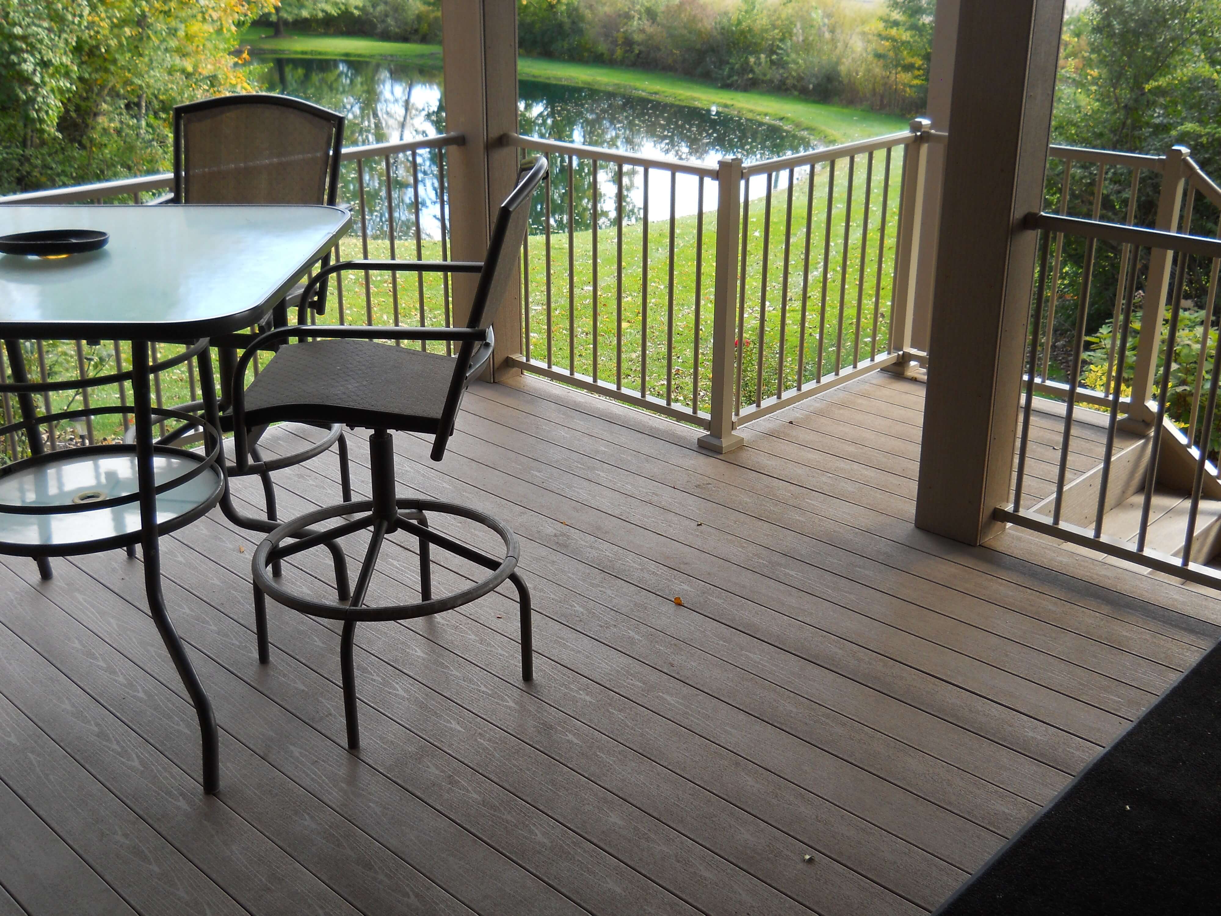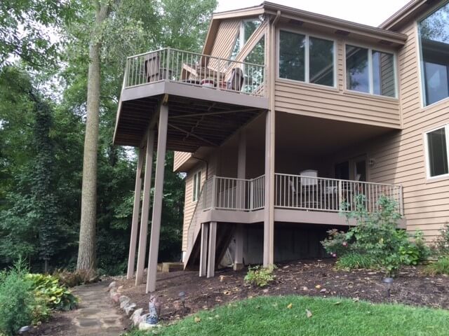 Archadeck of Fort Wayne and northeast Indiana expanded the upper deck, making it a functional space worthy of the stunning views. Both decks were finished with low maintenance Timber Tech Terrain in Sandy Birch including all trim work. The posts were also wrapped in composite making a clean, complimentary finish.