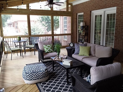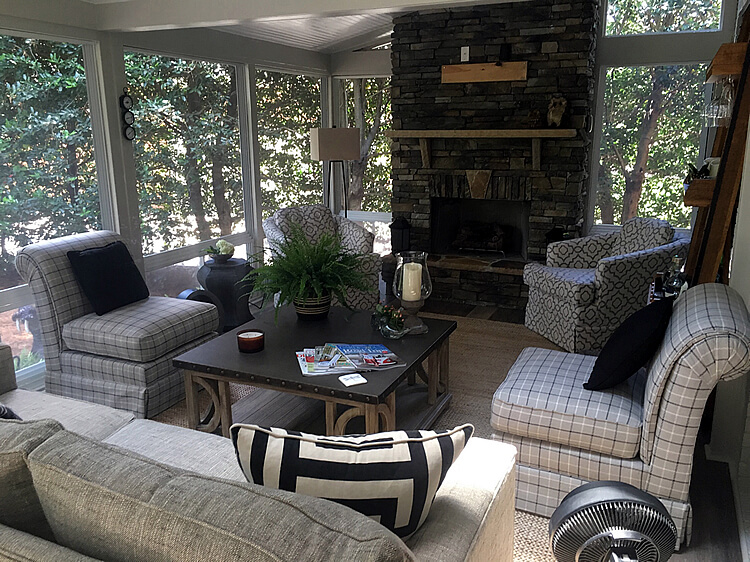 A screened porch with windows is often called a 3-season room. The advantage of having windows AND screens around your porch is that you can enjoy your porch more days of the year. You’ll be grateful for this benefit during the cooler months.