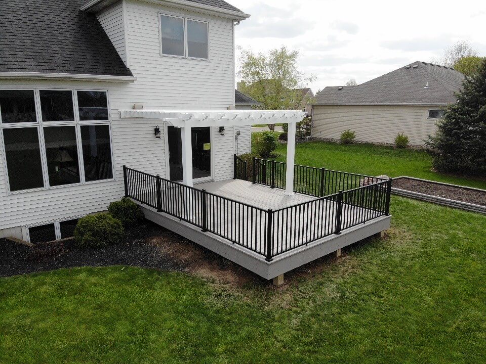 These homeowners in Decatur, IN, chose deck builder Archadeck of Fort Wayne to replace their existing composite deck. What they had was an early Trex deck. This composite deck had reached the end of its useful life. They decided to replace it with synthetic decking from TimberTech AZEK.