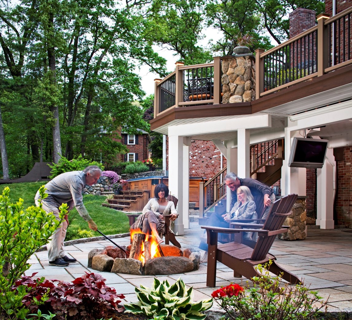The crackling roar of a firepit or fire feature to dot the nighttime sky with flittering flames of warmth and color. The lilting sound of autumn leaves cascading down from your landscape trees onto your backyard oasis.
