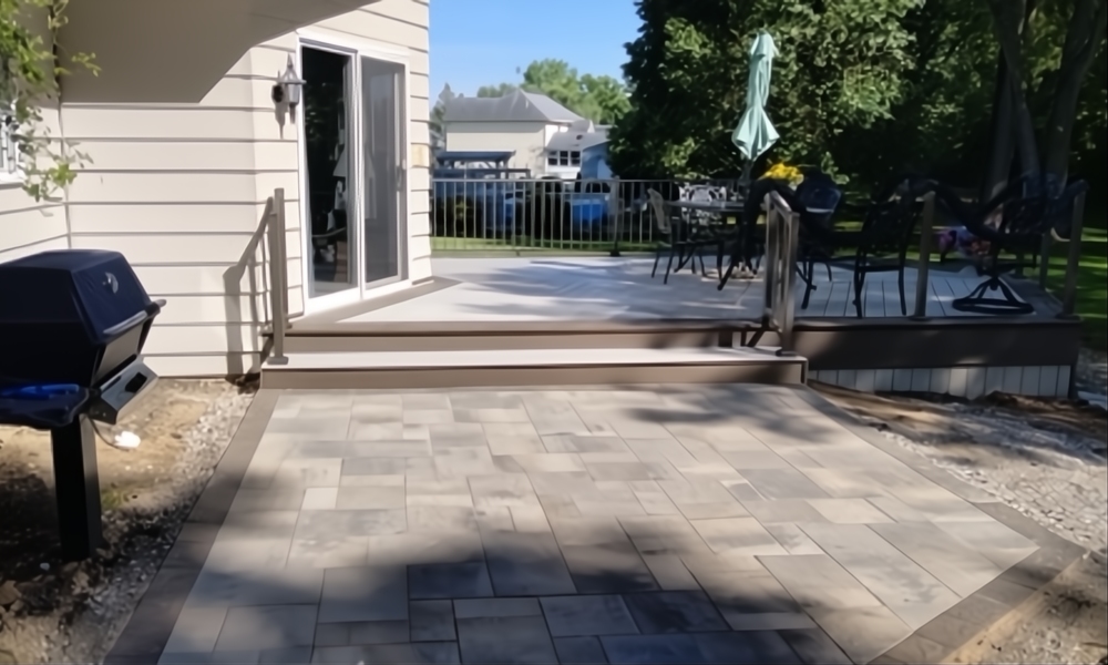 The ravages of time had taken their toll on this backyard combination outdoor living space in Auburn IN. The family wished to have both the worn deck and adjacent paver patio replaced, so they scheduled a complimentary design consultation with Archadeck to start the outdoor home improvement renovation process.