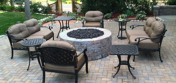 Littleton paver patio design with cozy fire pit for gathering with loved ones