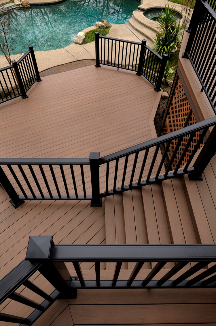 Traditional composites have long been manufactured with wood fiber and plastic ingredients. Some years ago, AZEK decided to undertake development of a board that eliminated the wood fiber component, and therefore improved the stain resistance, split resistance, and scratch problems that many wood fiber composite have had. Several manufacturers are offering 100% plastic boards today, however AZEK is the largest and fastest growing. Although this type of decking is usually slightly higher priced than a traditional wood fiber composite, many consumers will think it worth the investment, and so do we!