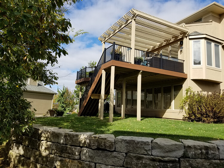 Pergola on elevated, low-maintenance deck in Lee’s Summit MO