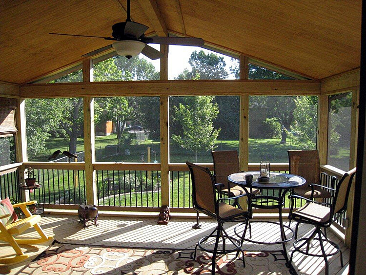 Light is always a huge consideration. Light is often one of the reasons you want to build a screened porch or sunroom. You likely want an indoor/outdoor room. You want the sights and likely sounds of your back yard while still having protection from rain and bugs and depending on the structure protection from wind and other elements. As you see in the picture above, those homeowners wanted a tremendous amount of light which is why their design nearly wall-to-wall windows. Roof style is also a significant factor as it relates to light. Some roof styles provide more light than others. For example, a gable roof can be open at one end with either screen or glass depending on the structure. This option really lets the light pour into the room.