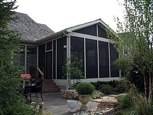 The thing you really need to think about first is how the room will tie into your house. If your house is one-story, will you be tying into the house or into the existing roof? If the house is two story, what is the window configuration on the back of the house above the first story. You can either put a roof above a window line or below a window line but the roof can’t traverse a window. So, if you have a row of windows across the first and second level, the roof will either need to tie into the house in between those windows or above the set of second story windows. If you have a very large window in the back of your house, that will likely be an area where your screened porch or sunroom cannot cross.