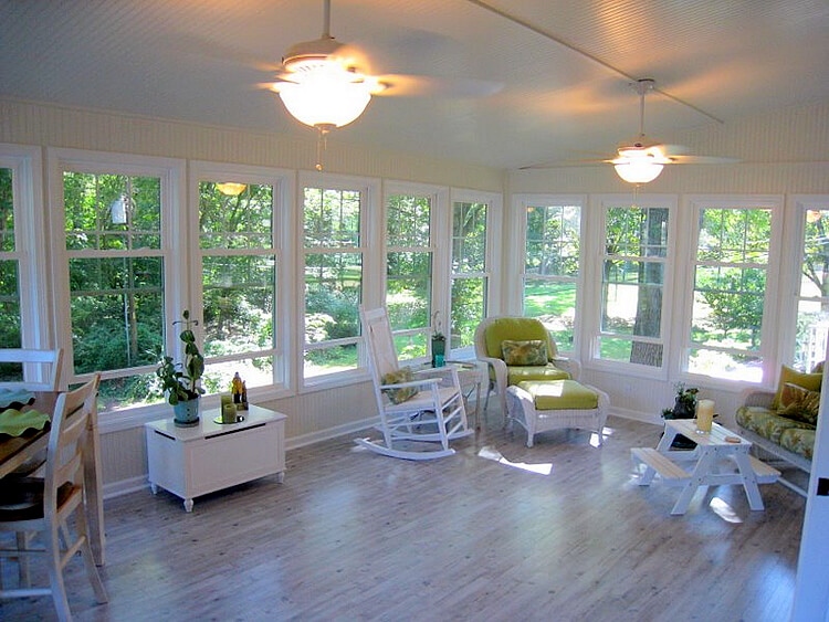 Are you considering putting indoor furniture or wooden furniture in your new sunroom? Are you considering having fabric covered chairs, sofas or table covers? Nothing will fade furniture and fabric faster than prolonged exposure to hot sun. Even when the sun doesn’t feel very hot outside, the elevated heat as a result of the glass windows will put your furniture and upholstery aging on overdrive.